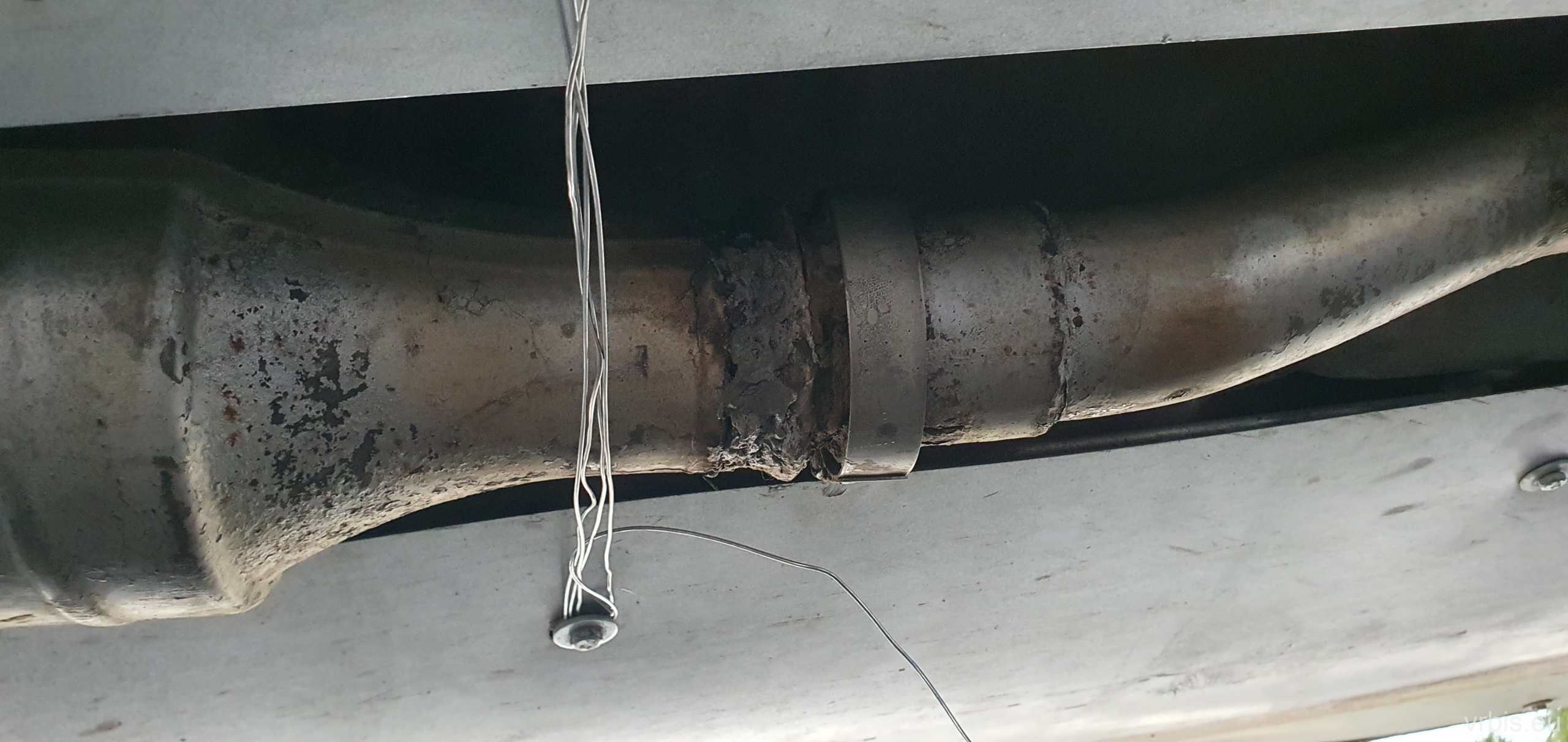 Zvedli jsme auto a hned bylo jasno, moje ranní předtucha byla správná – upadený výfuk za katalyzátorem. Pokusili jsme se to nějak upenit abysme s tím dojeli aspon k nejakému servisu, marně. Šli jsme se s Karlem zeptat chlapů, co u onoho posledního domu v dědině právě montovali plot, jestli by nám neuměli pomoct. Po krátké domluvě rukama-nohama nám nabídli, že to zavaří. Za necelou půlhodinu bylo hotovo. Chlapům jsem zaplatil balíkem českych piv a mohli jsme pokračovat dál. 🙂