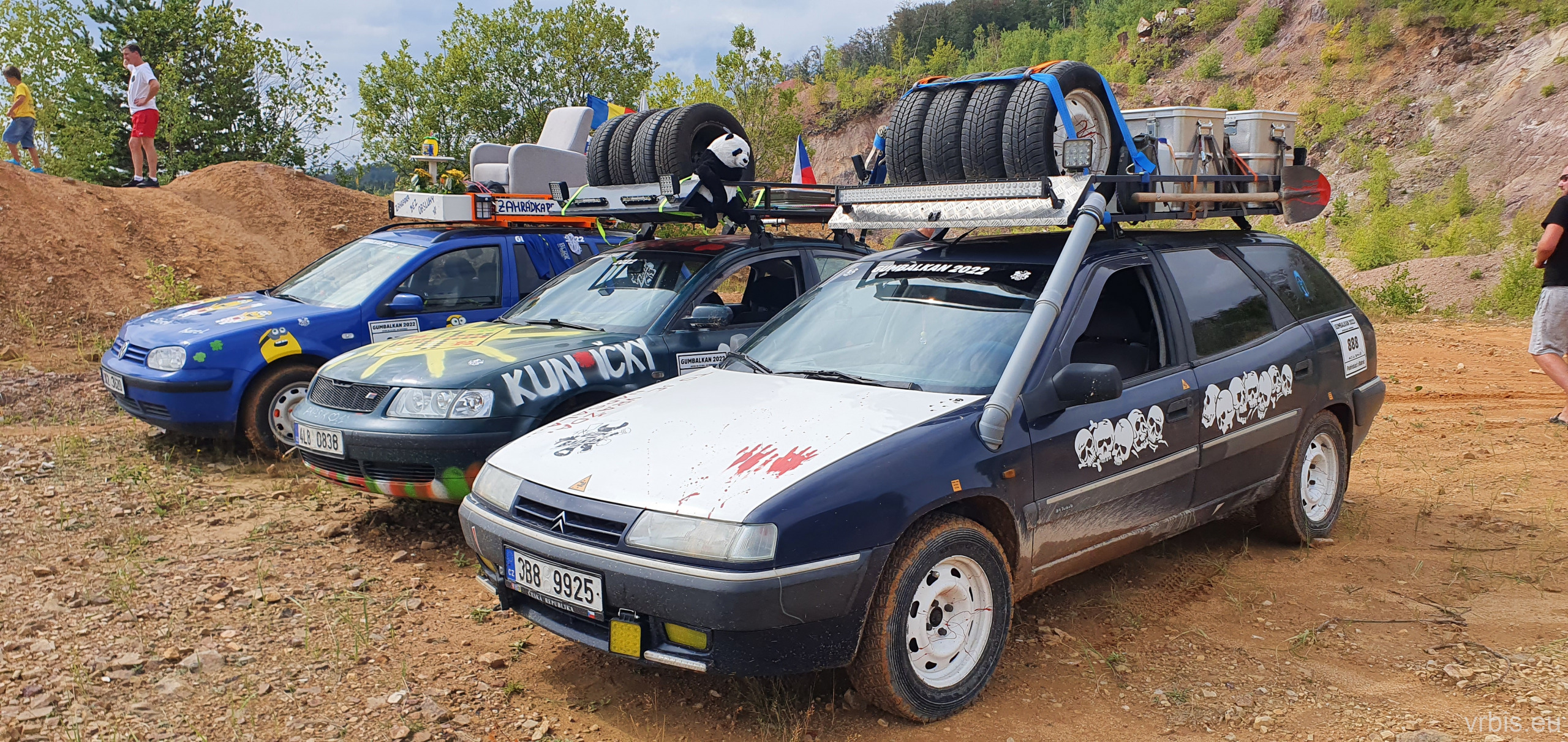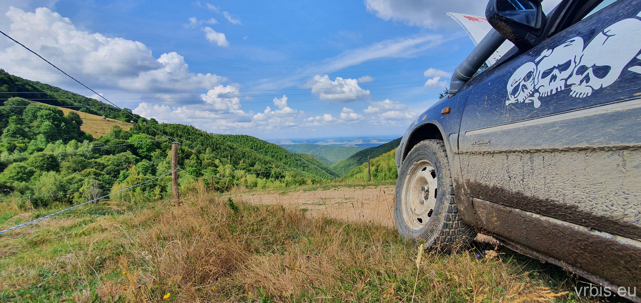 Dnešní plán sliboval spoustu zábavy mimo silnice. Cestu z „Měsíční krajiny“ k dalšímu bodu jsme si chtěli zkrátit lesem. Slepá ulička! Po půl hodině jízdy terénem jsme potkali další dvě posádky, od kterých jsme se dozvěděli, že je cesta neprůjezdná. Otočka. Ze zkratky nebylo nic, ale užili jsme si s auty v blátě 🙂