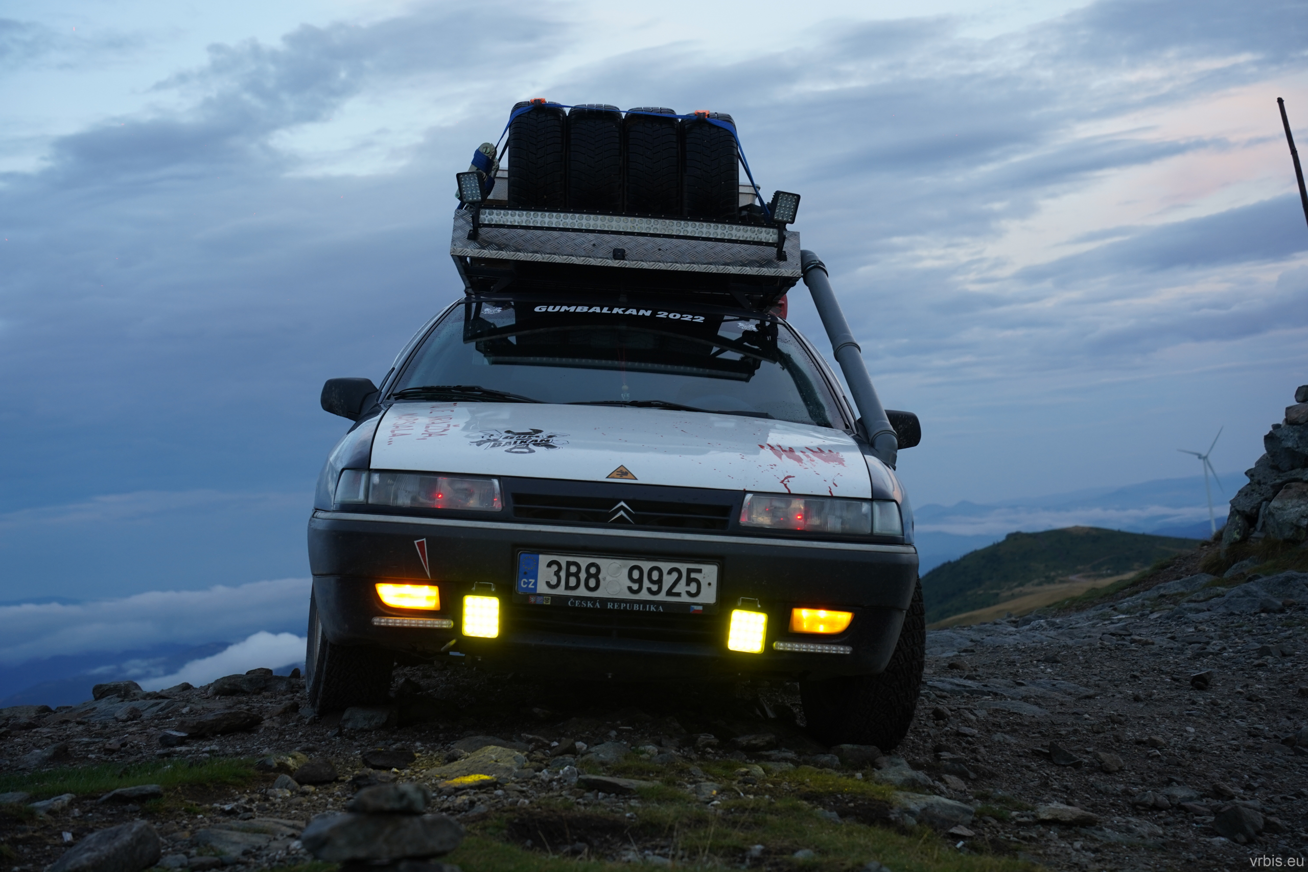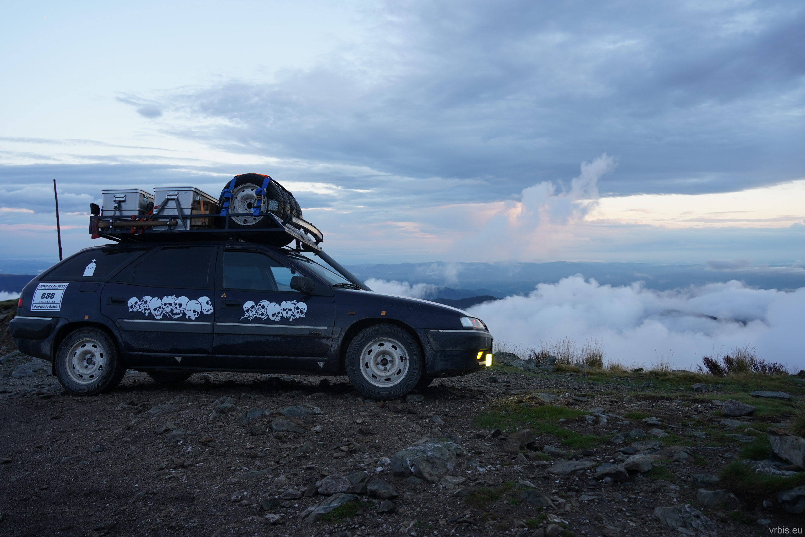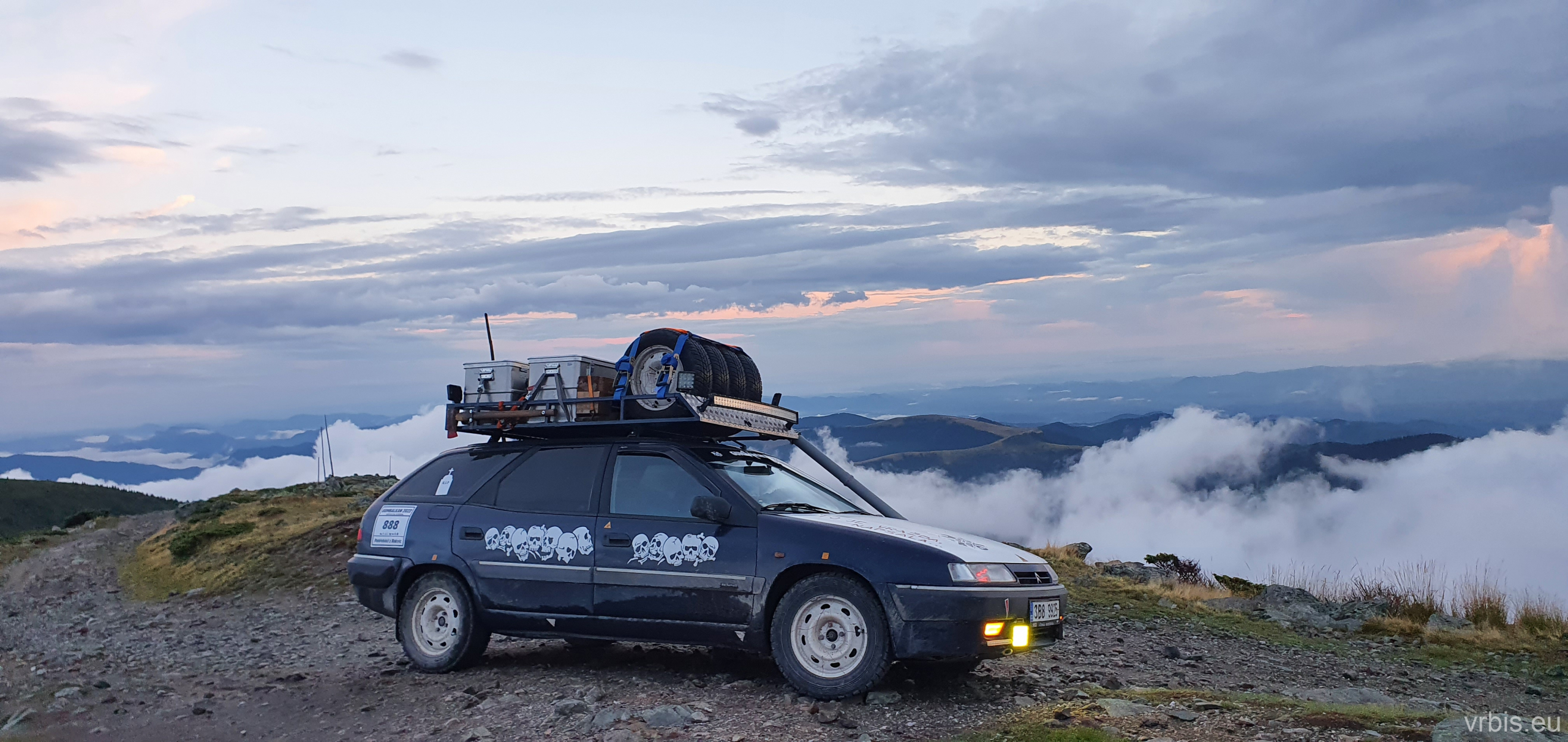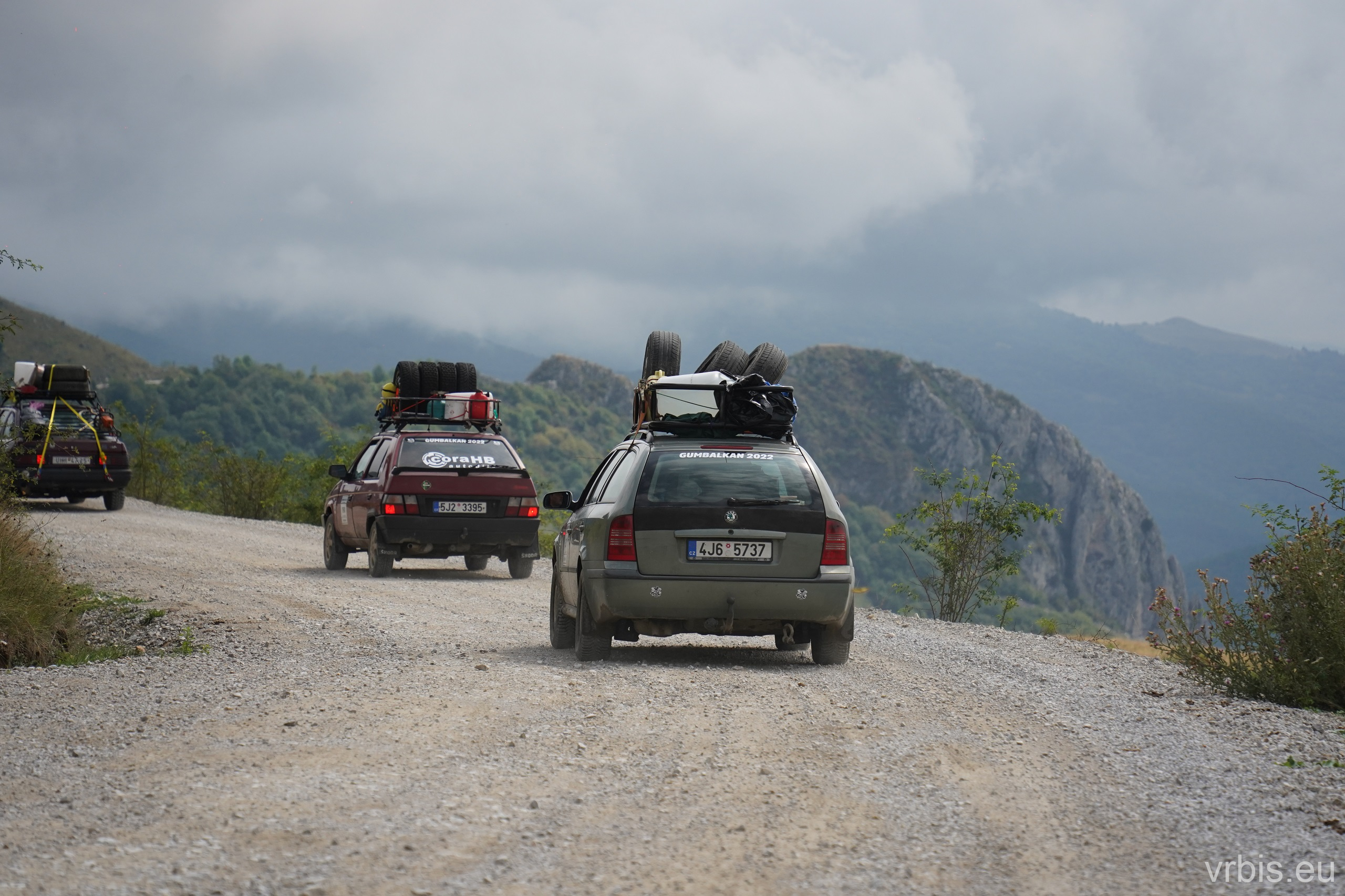Podřadil jsem, dal blinkr a krátkým zatroubením, dal najevo co se bude dít. S hrabajícími koly a oblakem kouře jsem auta před námi předjel. Ostatní mě následovali. Nasazené tempo už jsem nepovolil a pálíl to po štěrkové cestě vstříc vrcholku. Užíval jsem si každý metr té cesty na plno, žádný z jezdců rally by se za tento výkon nemusel stydět.