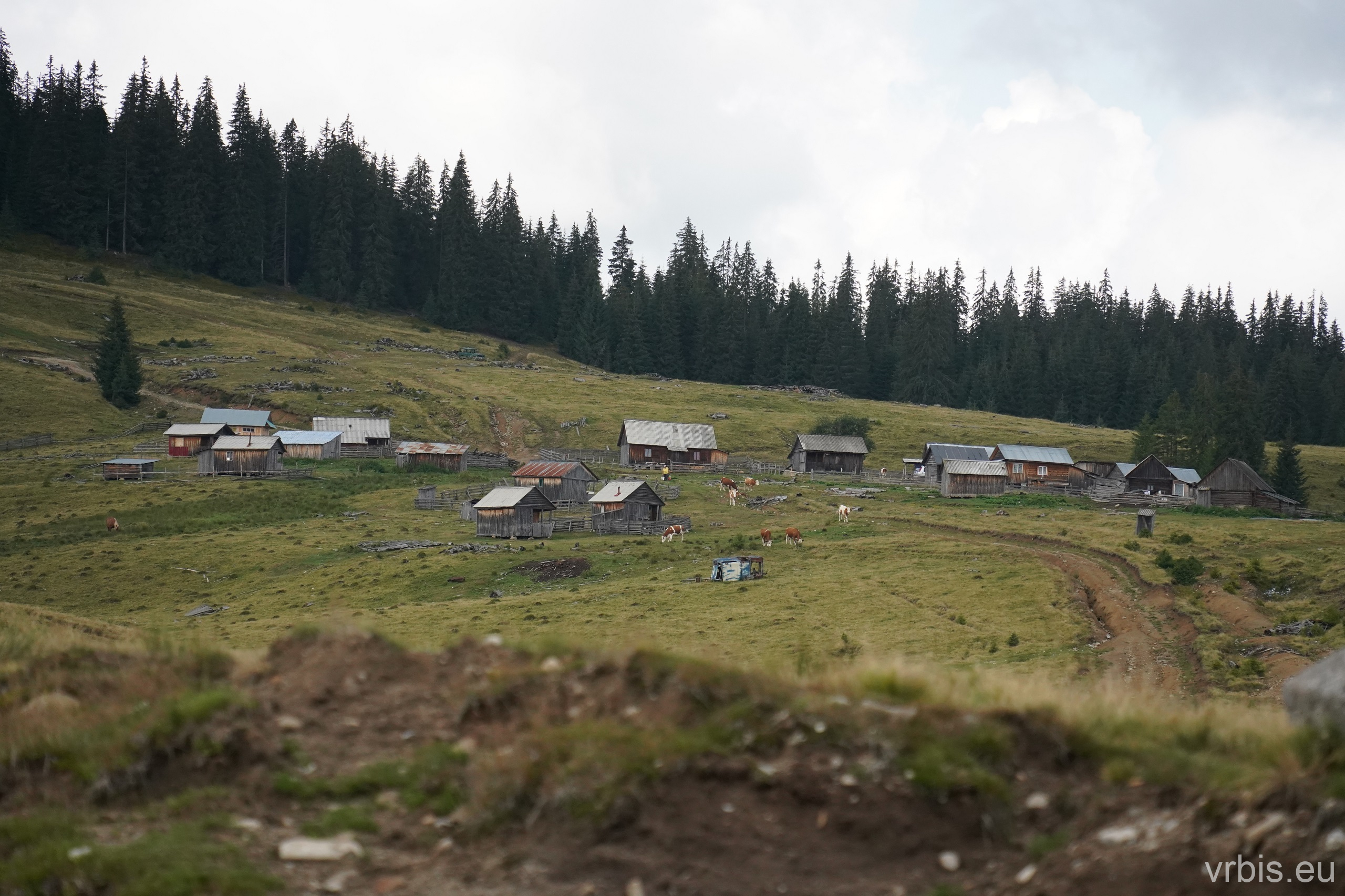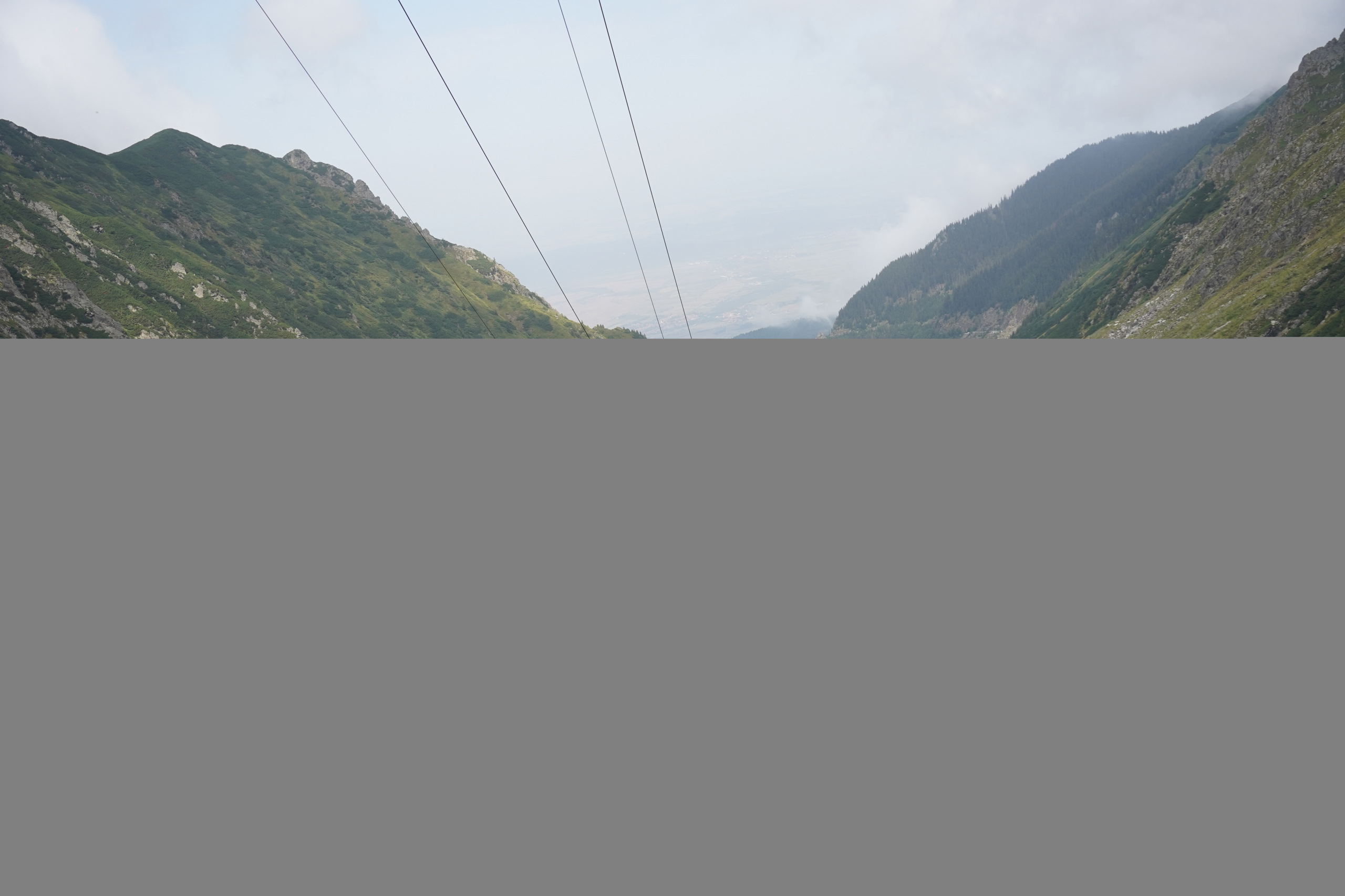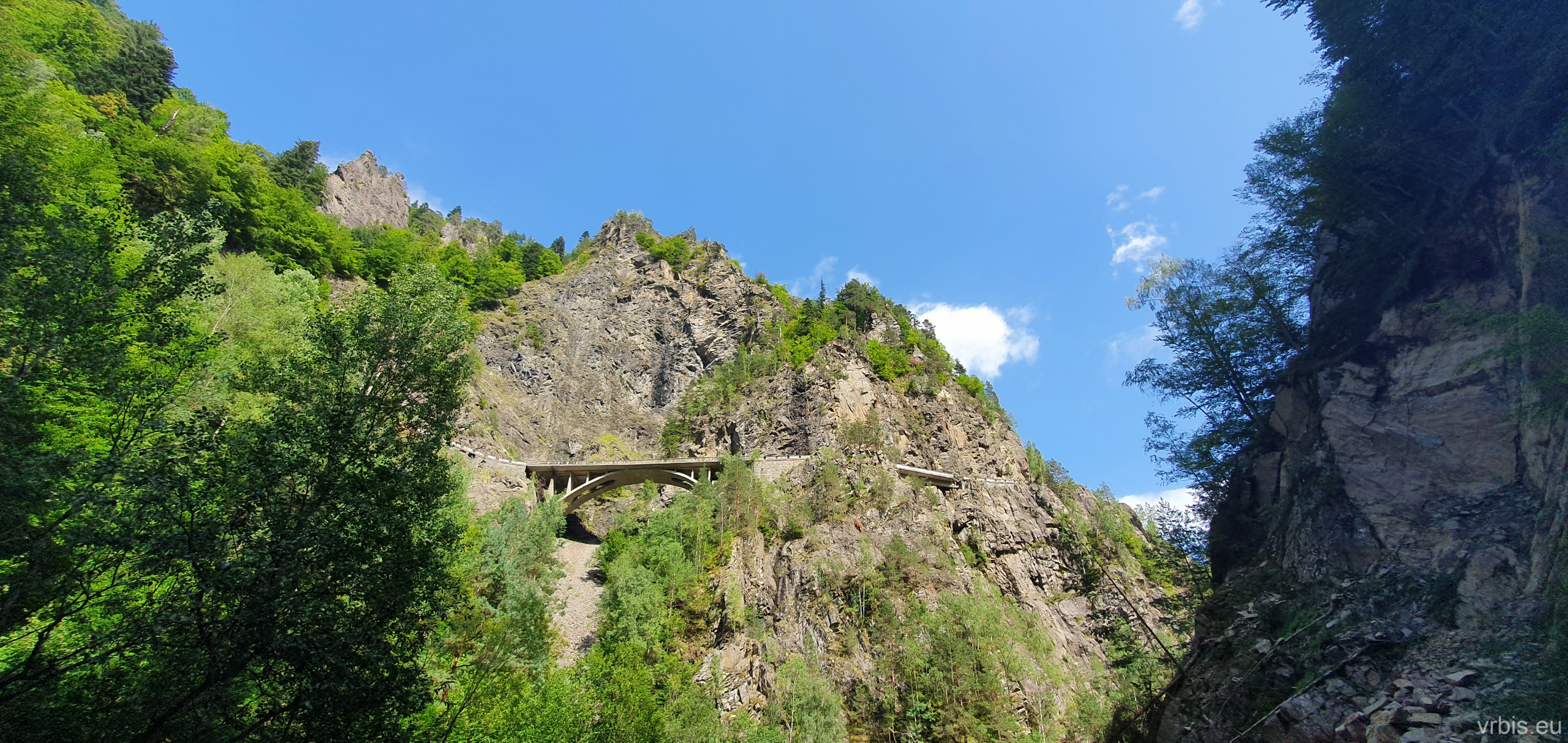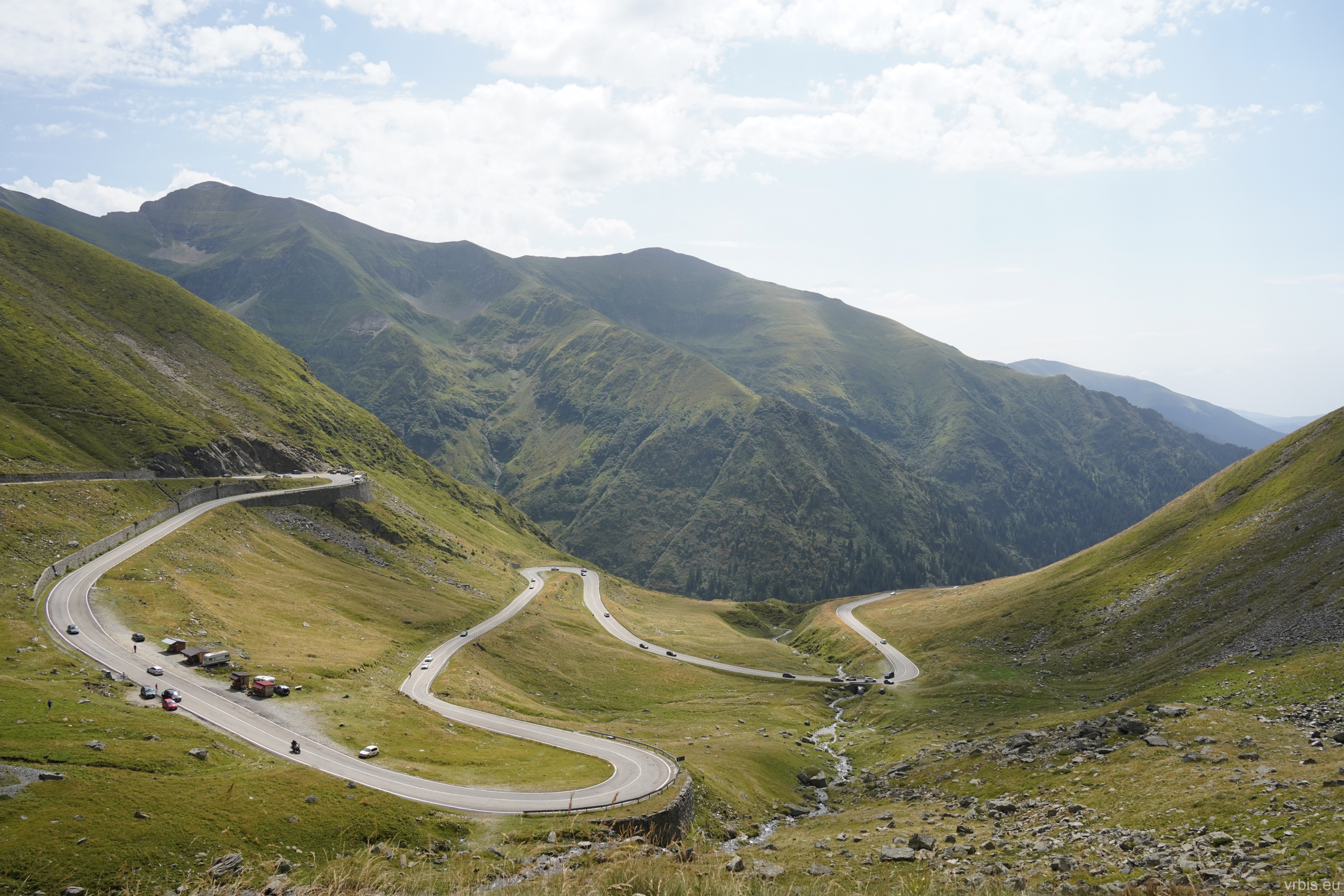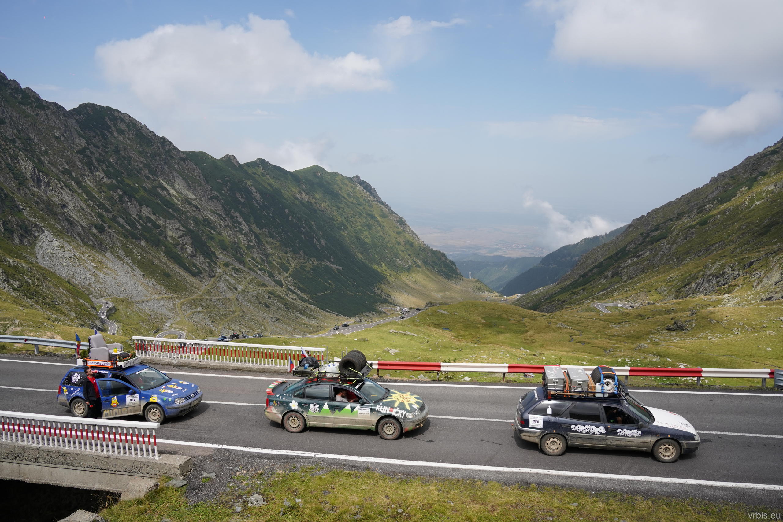 Po krátké zastávce u vodopádu „Cascada Iadolina“ následovala ještě kratší cesta. Po pár zatáčká nás v jízdě zastavil přes cestu stojící domíchávač. Zúsob výstavby zdejších silnic je mi záhadoou, ale budiž. Po asi púl hodině jsme mohli pokračovat dál. Následoval asfaltovaný úsek, který přerušovaly jen nepostavené mosty. Absenci vozovky a mostů začili kameny nasřkané signalním sprejem, jedna šipka pak ukazovala objížďku… Bezpečnost především… 😀