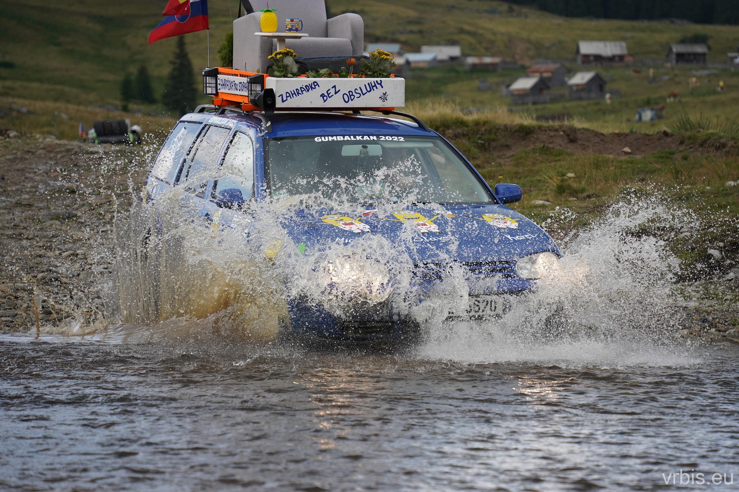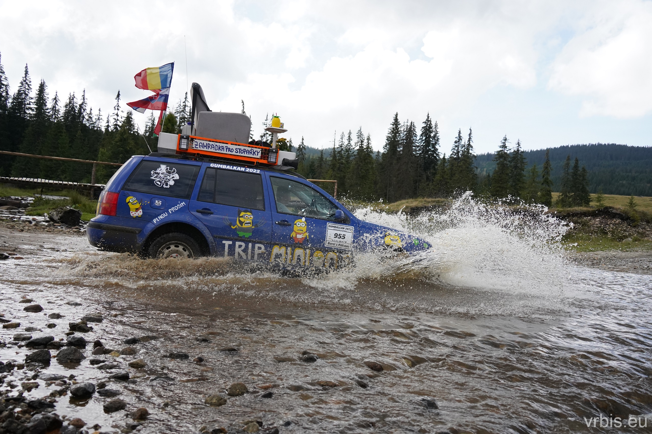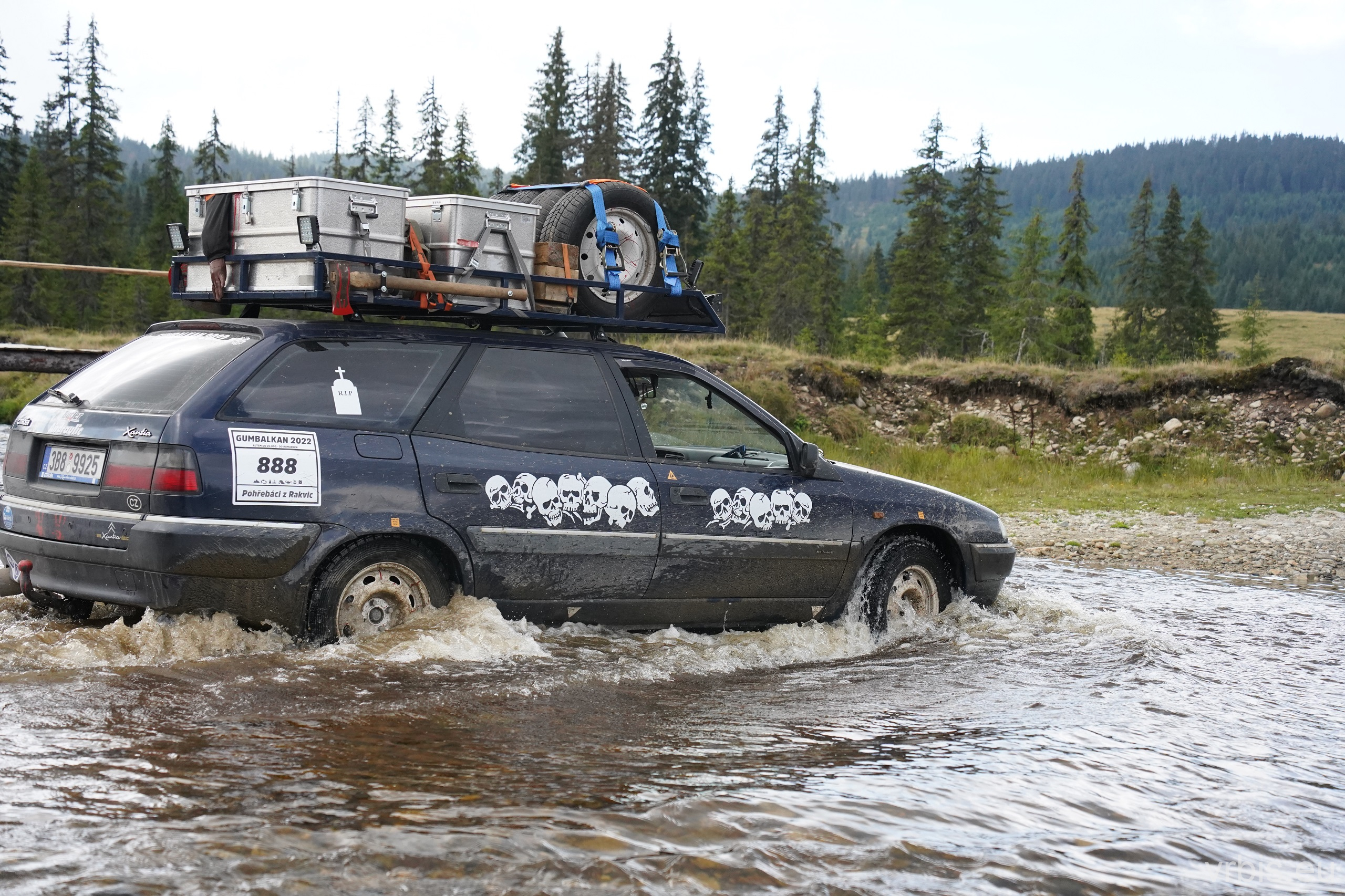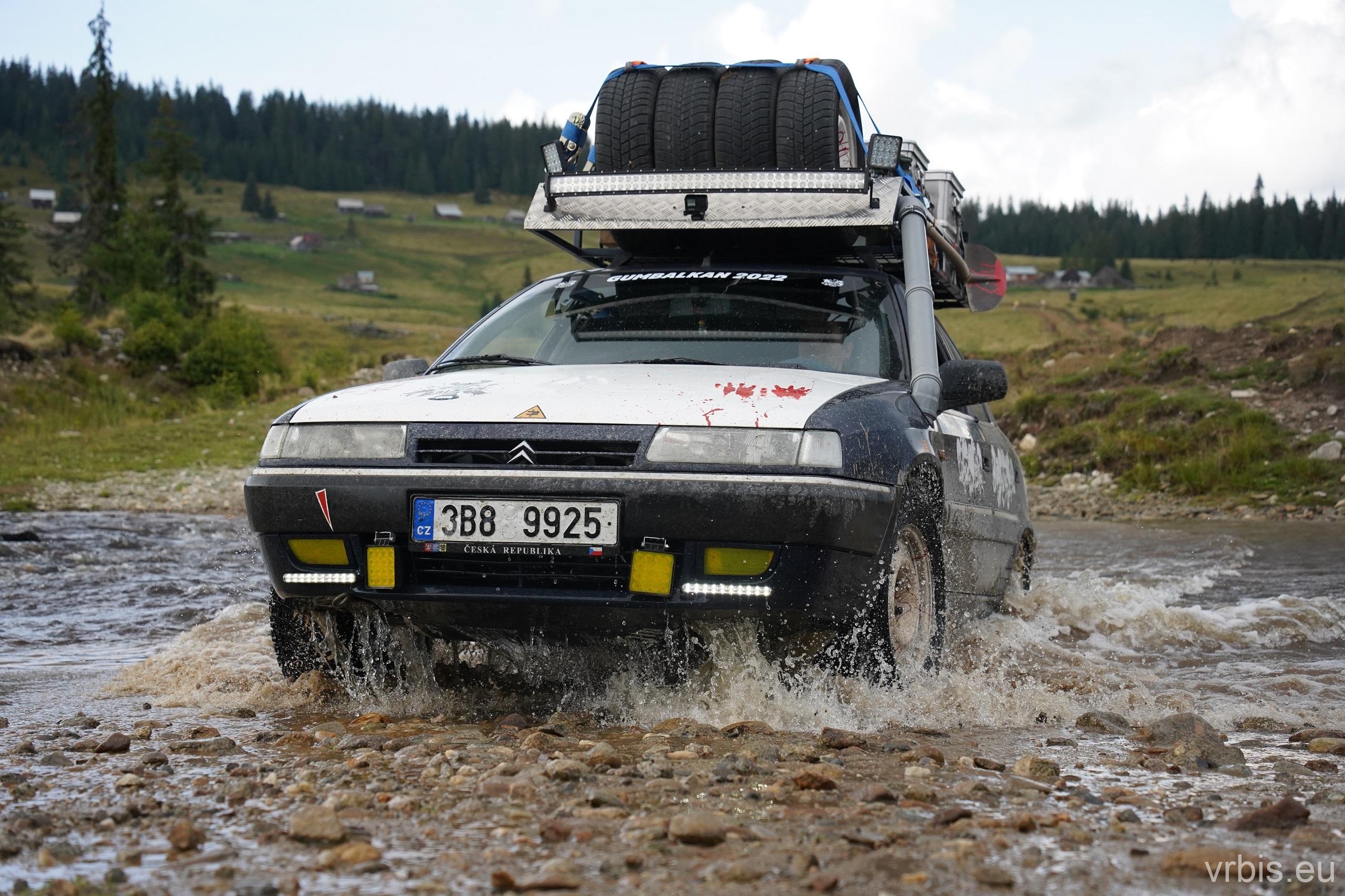 Po asi 100 km zábavy v terénu nás Roadbook přivádí opět do civilizace. Prohlídka města „Cluj-Napoca“ probíhá stylem „Drive-throw“. Zastavujeme natankovat a u toho si všímáme jak máme v porovnání s ostatními zaneřáděný auta. A to v rumunsku rozhodně nejezdí žádný leštěnky 😀 Další cesta vede do obchodu, kde nakupujeme zásoby na další dny. V tom několika z nás přichází na mobil upozornění před silnou bouřkou. Schodujeme se, že dnes to na kempování v přírodě nebude. Splníme tak i Karlův sen vyspat se po cestě aspoň jednou v posteli a dát si teplou sprchu. Ukolujeme ho tedy hledáním ubytování mezi tím než dojedeme na dnešní poslední Checkpoint. Než jsme stihli naložit nákup do aut, obloha potemněla a zvedl se vítr. Začíná pršet dřív než jsme odvezli vrátit vozík. Během několika minut se silnice proměňujíe v řeku, z oblohy doslova tečou souvislé proudy vody.