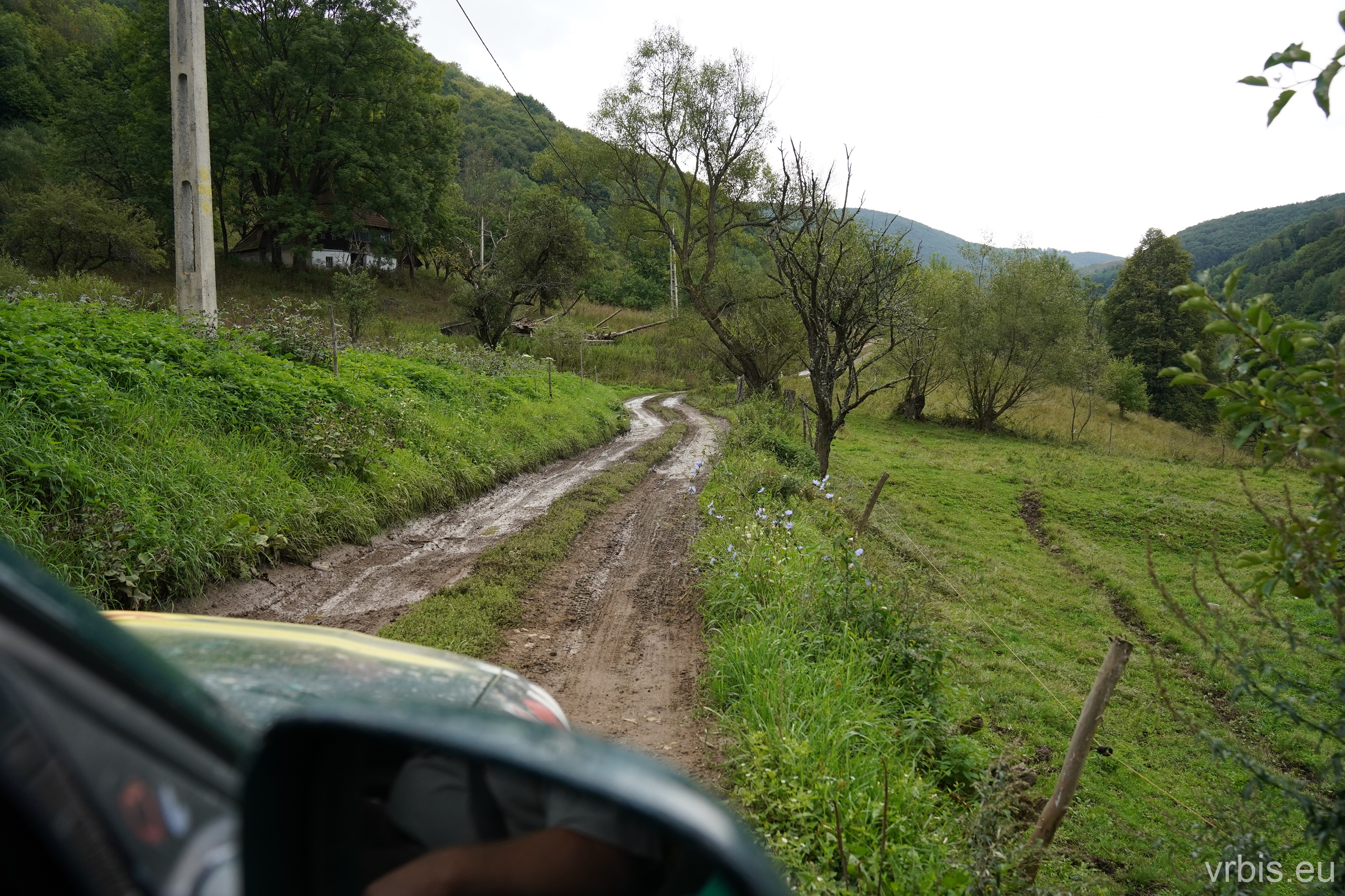 Na jednom úseku jsme potkali zoufale stopující místní houbaře. Jejich auto nevypadalo být zcela v pořádku, zastavil jsem s myšlenkou pomoci. Rukama nohama mi vysvětlil, že potřebují kladivo. Zahrabal jsem v nářadí a vytáhl menší kladivo a podal ho Rumunovi. V naději, že budu moci pomoc jsem ho následoval k auto. Jeden z jeho kolegů se právě snažil dostat hevér pod auto, které leželo takříkajíc na pupku. Zhodnotil jsem situaci, co se asi stalo a jak můžeme pomoci. Auto mělo vytržené kolo i s poloosou z převodovky, vyhozený spodní čep a kolo bylo vytočené do pravého úholu vůči směru jízdy. V podstatě je to na odtahovku, oprava na místě zabere hodně času a ten my nemáme. Bylo jich asi šest a očividně si vědí poradit sami. Rozhodl jsem se jim kladivo věnovat a popřál jim hodně štěstí.