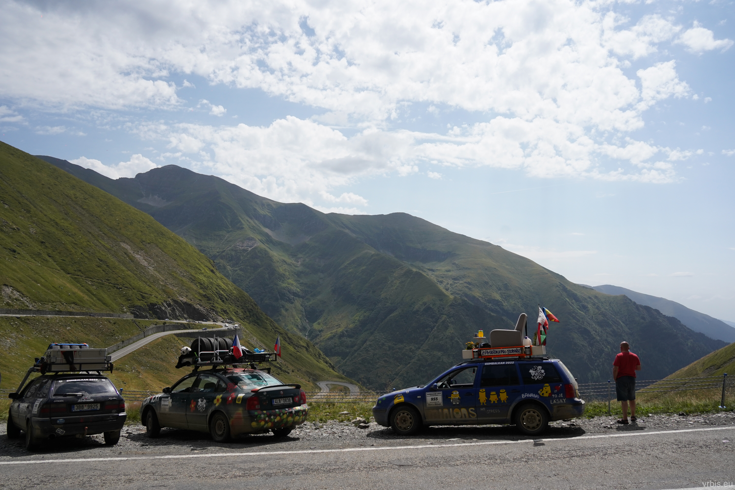 Na dalším bodě se k nám dostává volání o pomoc, kousek od nás sjelo auto z cesty. Jedeme tam, následuje nás ještě několik aut. Když jsme namístě a domlouváme se jak auto nejlépe vyprostit, přichází zpráva, že za námi jiné auto, které je vyprostí navyjákem. Opatrně se tedy vyhýbáme a bez užitku pokračujeme dál v cestě. Projíždíme přes hory a doly, cesta se mění každým kilometrem, hlína, štěrk, asfalt a zase hlína. Člověk si může ukroutit hlavu nad těmi výhledy.