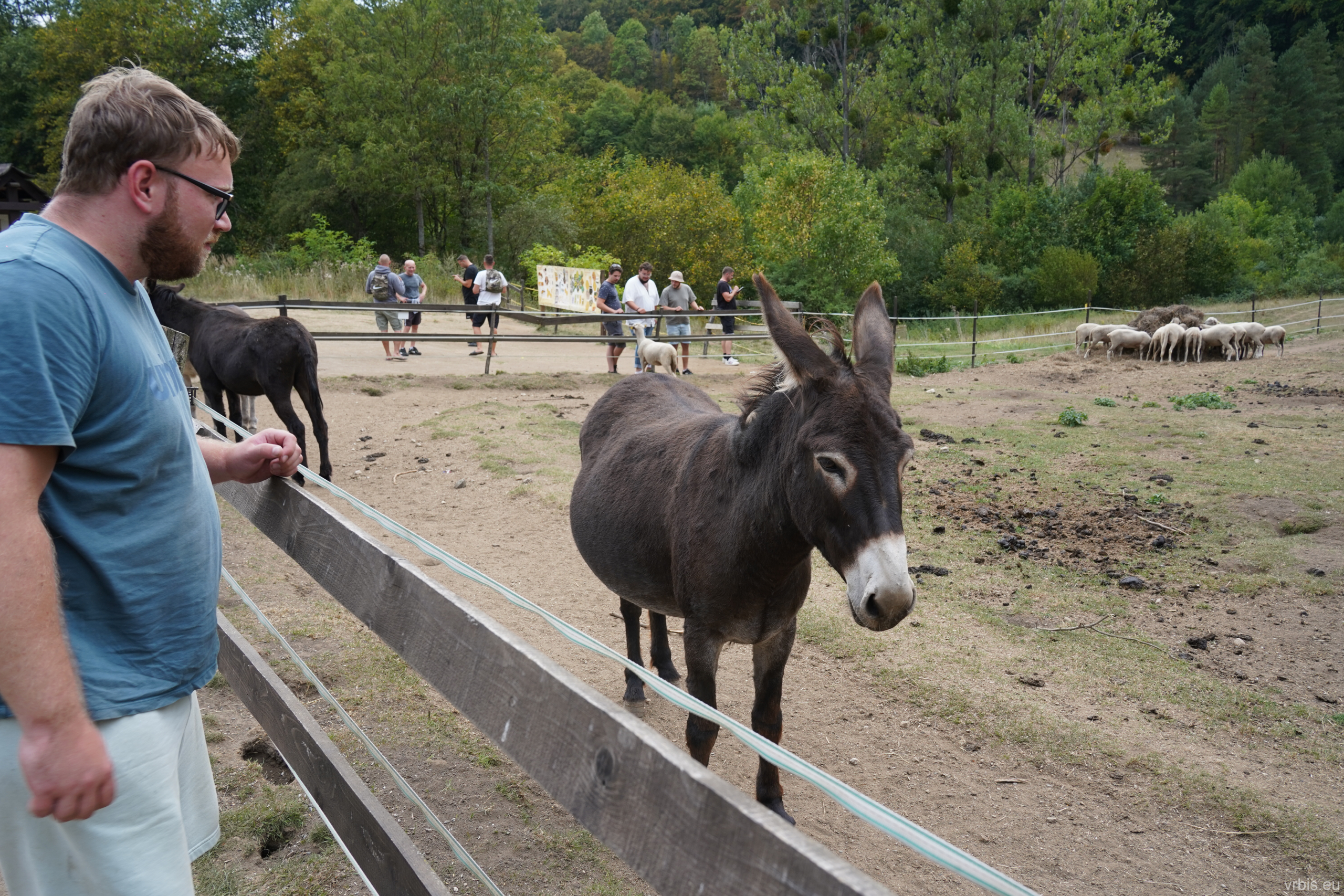 Jedeme po Transalpině až nahoru na „Transalpina View Point“. Vraždě se klikatou cestou do kopce moc nechce, ale drží se. Po cestě potkáváme osla stojícího u cesty, vypadá jako vytesaný z kamene. Na vrcholku se rozehříváme na slunci, které je ještě nízko nad obzorem a s Dominikem kontrolujeme cestu v mapě. Máme před sebou ještě pořádný kus cesty a zítra musíme dojet do cíle. Ujímám se vedení a nasazuji „svižné“ tempo. 😀 Cestou z View Pointu potkáme opět toho osla. Nepohl se snad ani o milimetr. Další osel zatarasil jednomu nešťastníkovy cestu do auta. V jiné zatáčce se zase jeden bača rozhodl převádět ovce přes cestu. Je to rozmanitá krajina…