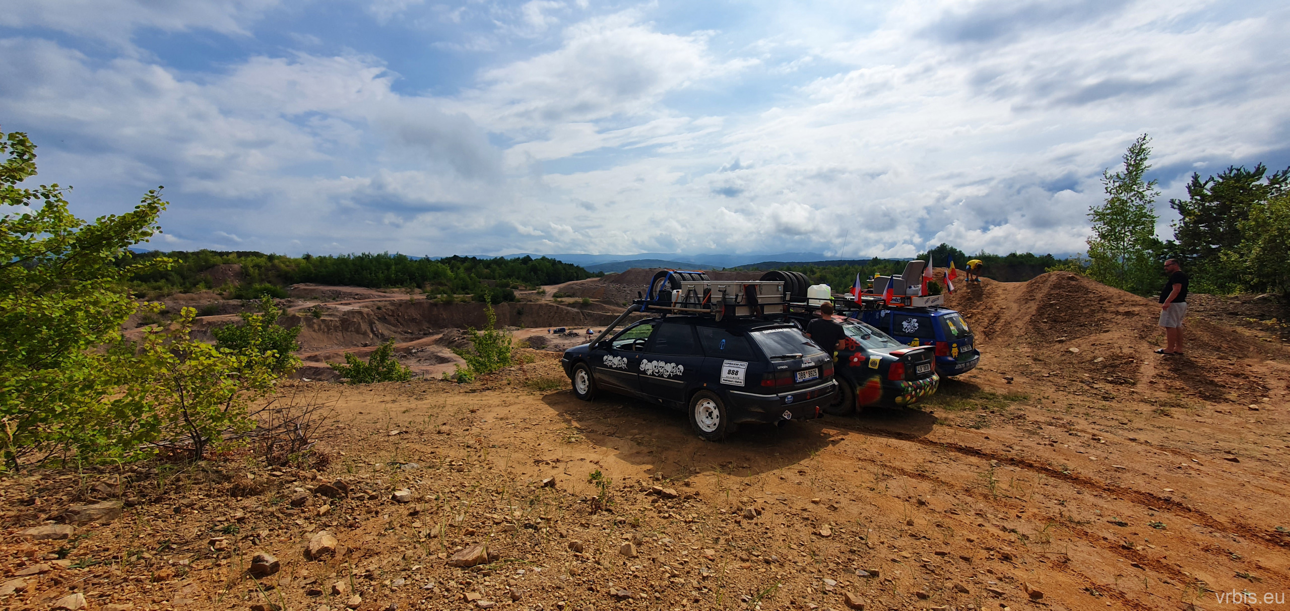 Dnešní plán sliboval spoustu zábavy mimo silnice. Cestu z „Měsíční krajiny“ k dalšímu bodu jsme si chtěli zkrátit lesem. Slepá ulička! Po půl hodině jízdy terénem jsme potkali další dvě posádky, od kterých jsme se dozvěděli, že je cesta neprůjezdná. Otočka. Ze zkratky nebylo nic, ale užili jsme si s auty v blátě 🙂