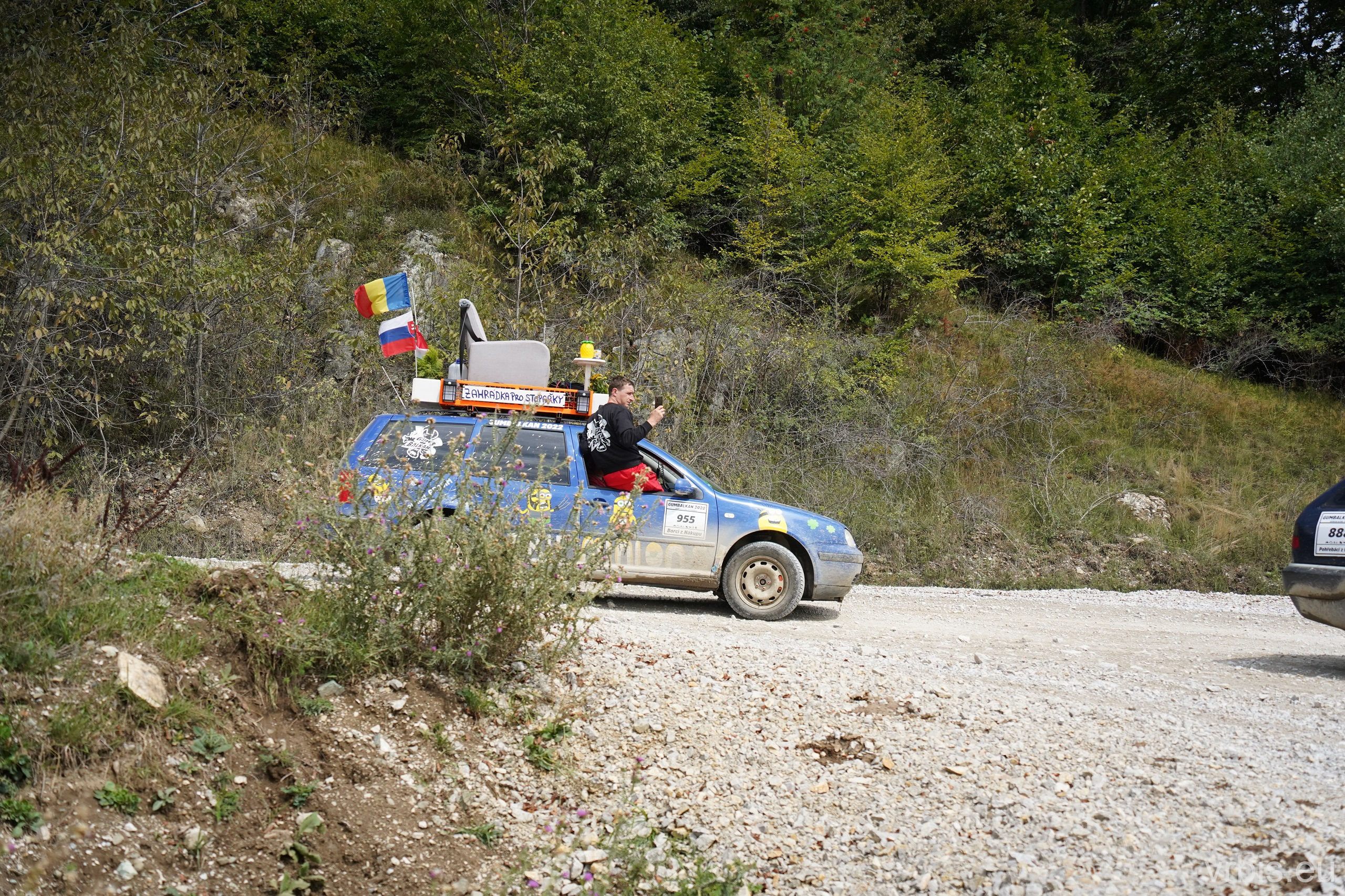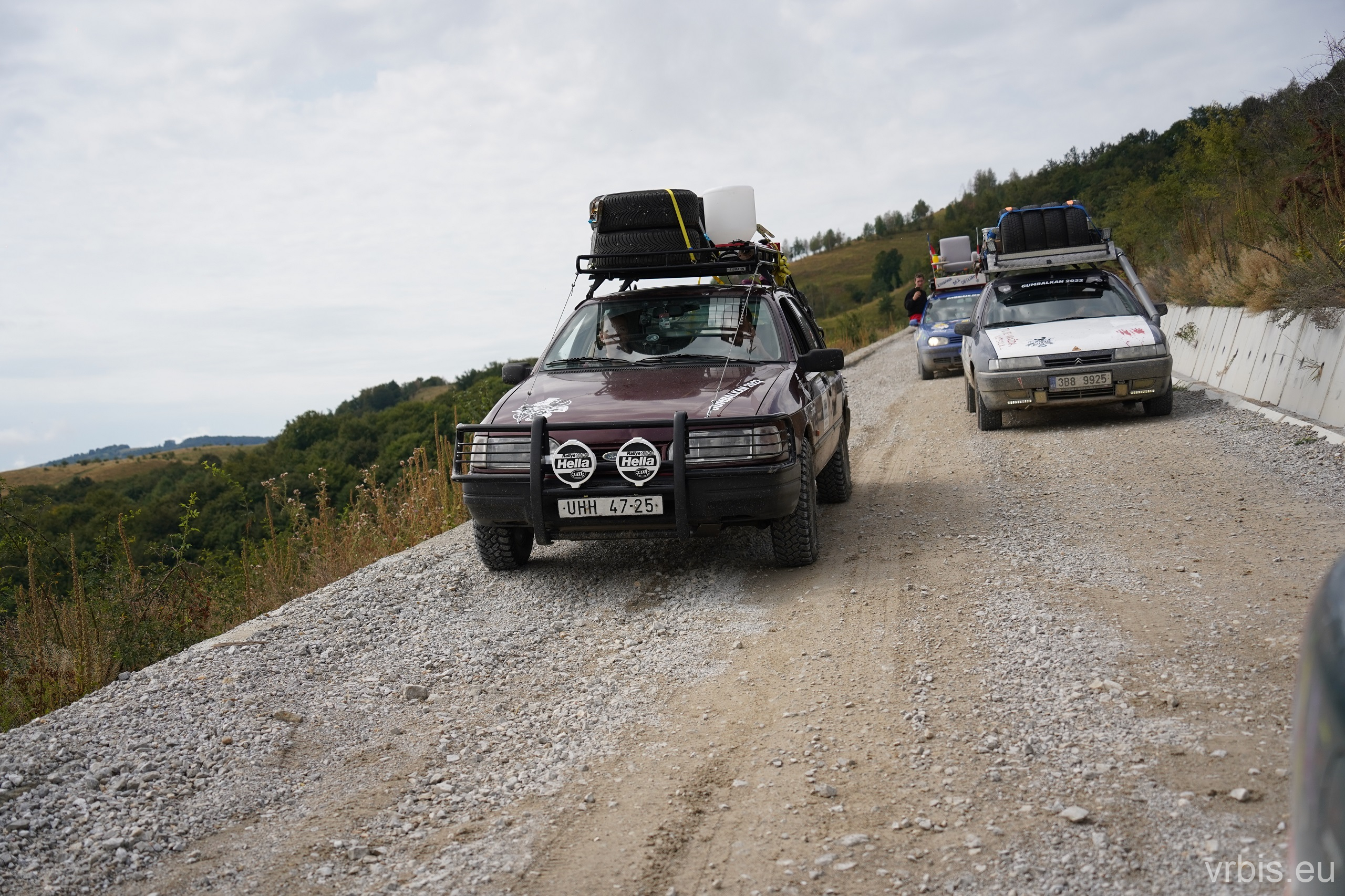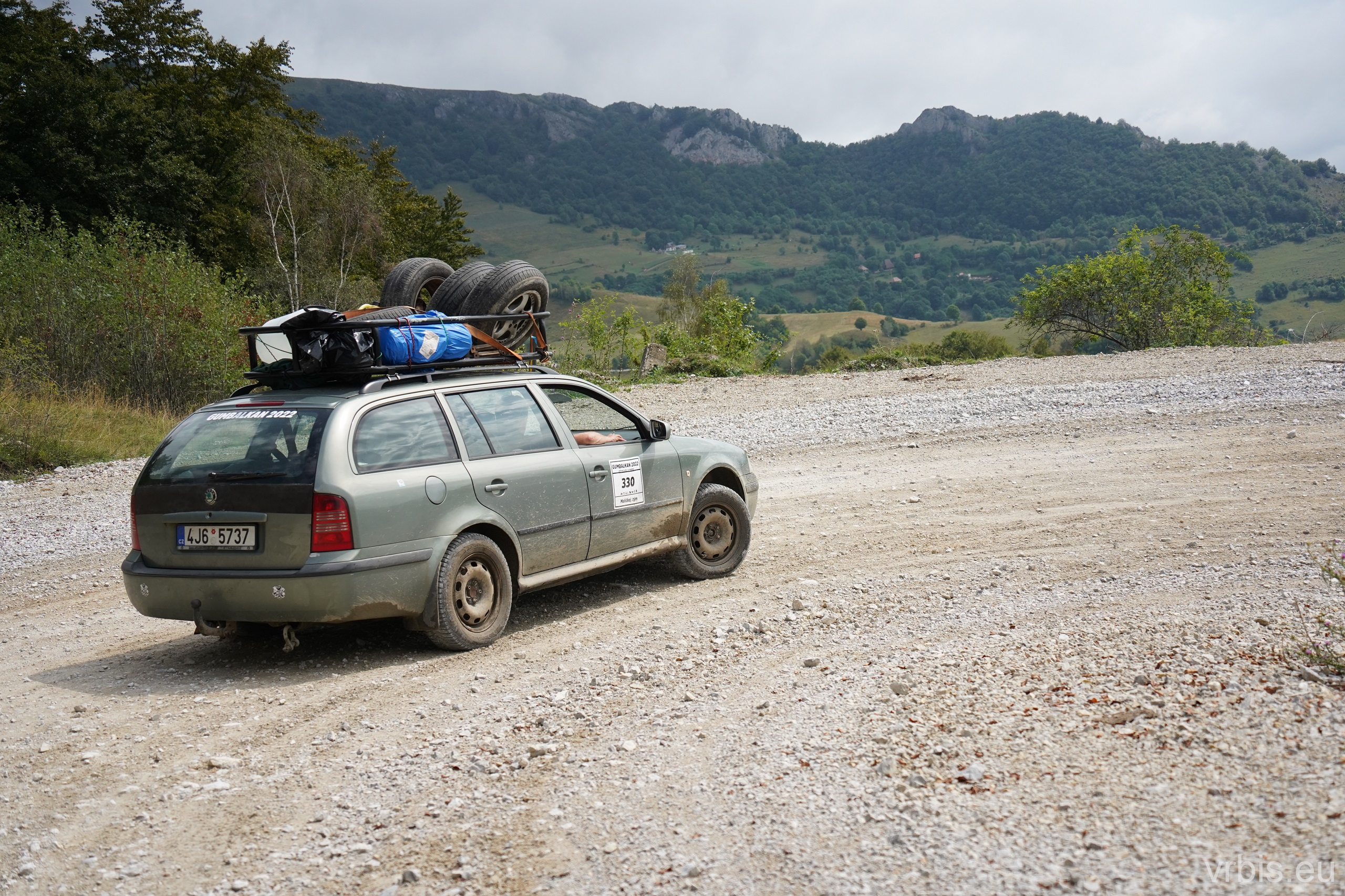 Rumunské (ne)cesty nás dovedli až na úpatí hory „Vârful Cucurbăta Mare“, kde jsme dojeli další posádky. Šnečím tempem jsme se za nimi vlekli po kamenité lesní cestě už asi 20 minut než mě to přestalo bavit. Volám do vysílačky „To je nudááá!! Nepředjedeme je?“. V zápětí se ozvalo „Ukaž jim to!“. Toho jsem se chytil, ikdyž byla cesta relativně úzká, pořád zde bylo ale dost místa na to abycho auta předjeli.