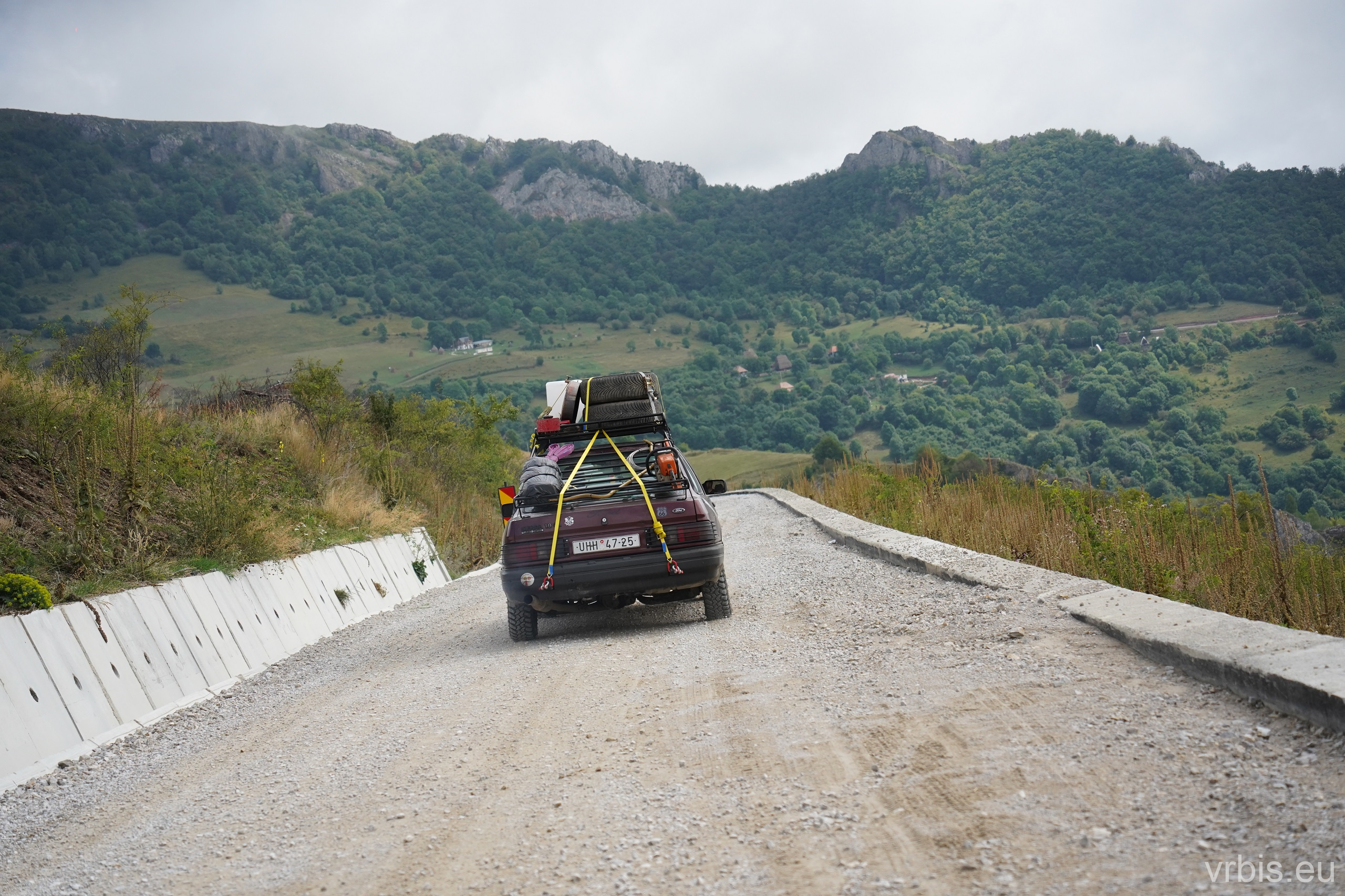 Projížíme přes pohoří „Șureanu“, cesty jsou klikaté a terén náročný, ale my si to jako vždy užíváme. Napojujeme se na Transalpinu a pokračujeme po ní k poslednímu bodu dnešního programu. Než se setmí nacházíme tábořiště na malé mítině vedle silnice. Původně jsme chtěli kempovat někde u vody, ale jsme v oblasti národního parku a všude jsou zákazy vjezdu. Mítina však leží asi 2 m pod úrovní silnice a sjezd na ni je relativně prudký. Ráno bude sranda se odsud vyhrabat.