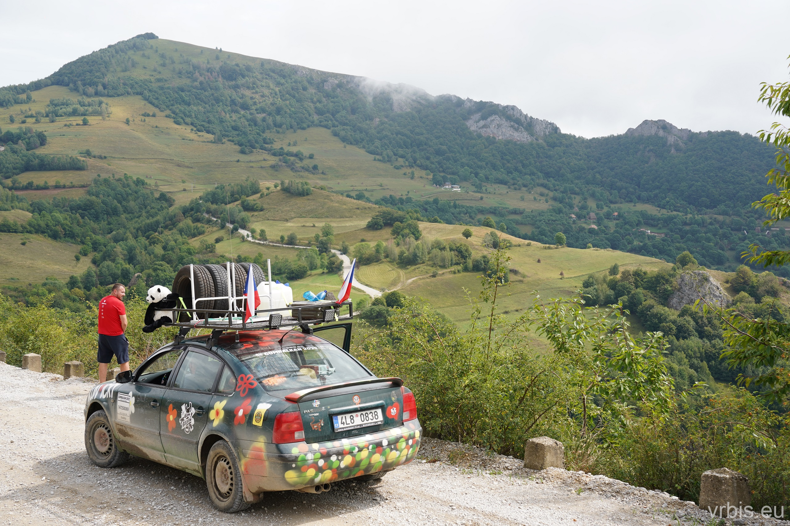 Na dalším bodě se k nám dostává volání o pomoc, kousek od nás sjelo auto z cesty. Jedeme tam, následuje nás ještě několik aut. Když jsme namístě a domlouváme se jak auto nejlépe vyprostit, přichází zpráva, že za námi jiné auto, které je vyprostí navyjákem. Opatrně se tedy vyhýbáme a bez užitku pokračujeme dál v cestě. Projíždíme přes hory a doly, cesta se mění každým kilometrem, hlína, štěrk, asfalt a zase hlína. Člověk si může ukroutit hlavu nad těmi výhledy.