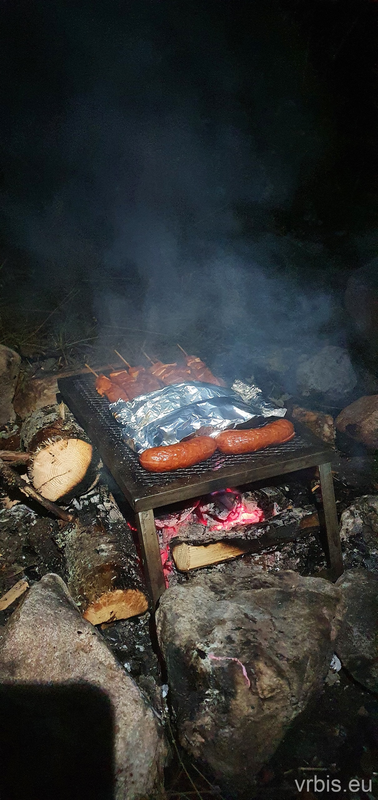 Dnešní večeři si ugrilujeme. Místo jsme vybírali účelně, ohniště už tu někdo vybudoval. Zbývá nachystat dřevo. Zde přichází ke slovu motorvá pila, kterou jsem bral pro případ, že by na cestě byly popadané stromy. To se zatím nestalo, ale svoji službu si muže odkroutit i takto. Během několika minut společné práce je dříví nařezané, nasekané a oheň už praská. Po večeři a několika pivká i tento den končí.