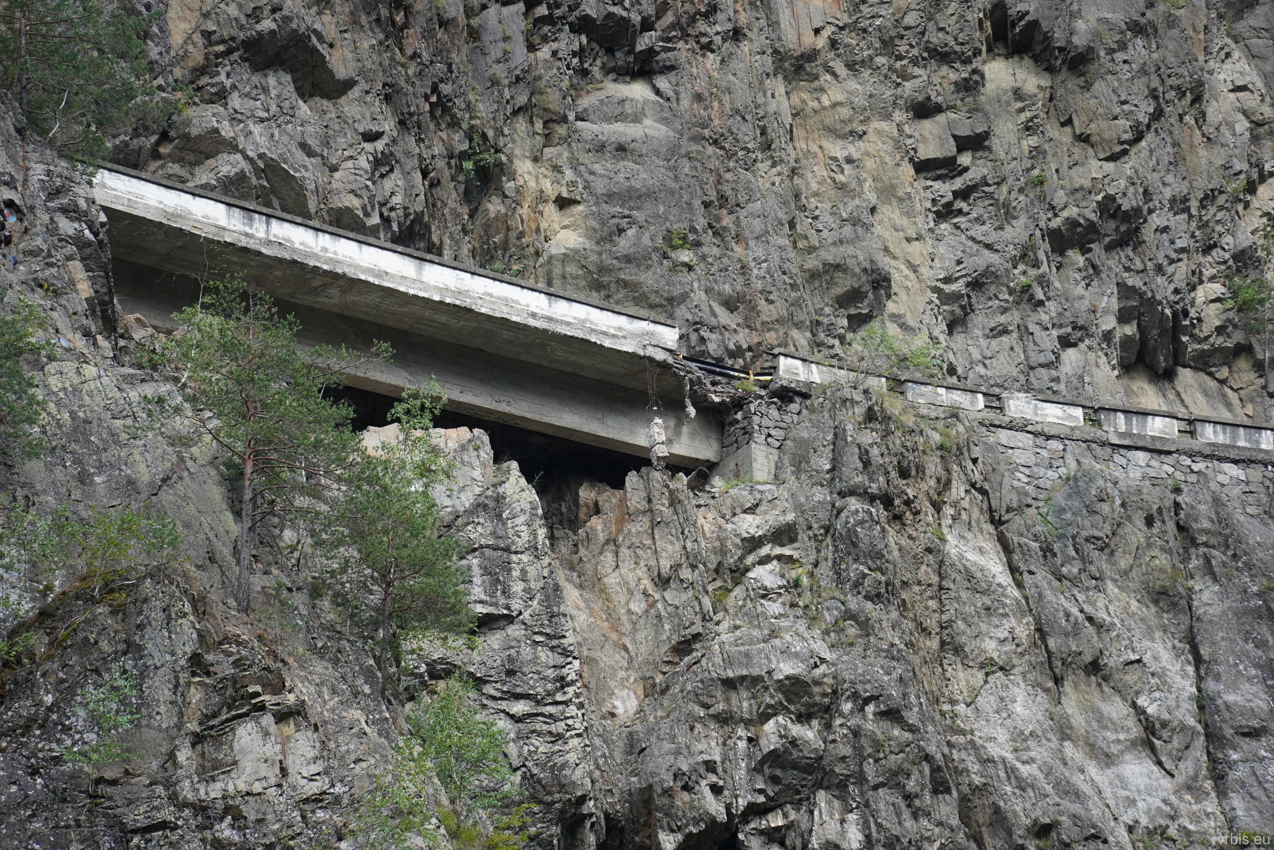 Po krátké zastávce u vodopádu „Cascada Iadolina“ následovala ještě kratší cesta. Po pár zatáčká nás v jízdě zastavil přes cestu stojící domíchávač. Zúsob výstavby zdejších silnic je mi záhadoou, ale budiž. Po asi púl hodině jsme mohli pokračovat dál. Následoval asfaltovaný úsek, který přerušovaly jen nepostavené mosty. Absenci vozovky a mostů začili kameny nasřkané signalním sprejem, jedna šipka pak ukazovala objížďku… Bezpečnost především… 😀