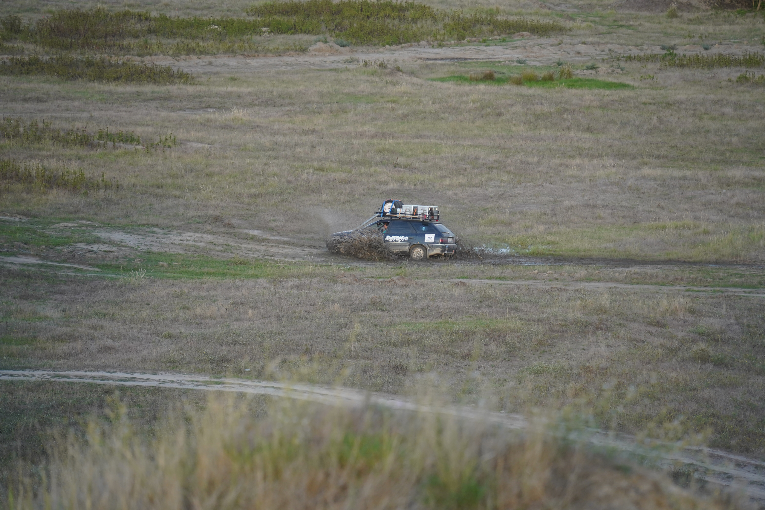 Následující bod byla vypuštěná přehrada, bohužel mě navigace poslal ze špatné strany a tak jsme minuly ten nejzábavnější úsek (což jsme zjistili, až ze zveřejněných videií ostatních posádak) :_( Dali jsme si oběd a využíli suchého rovného terénu ke krátkému servisu. Nemám olej do hydrauliky, ale tlumič se mi povedlo přetěsnit, to by mělo vydžet. Prašíkovi se přehřívá brzda, rozhýbání brzdiče snad pomůže. Jedné z projíždějících posádek jsem „prodal“ 4 ventily do kol za láhev pálenky.