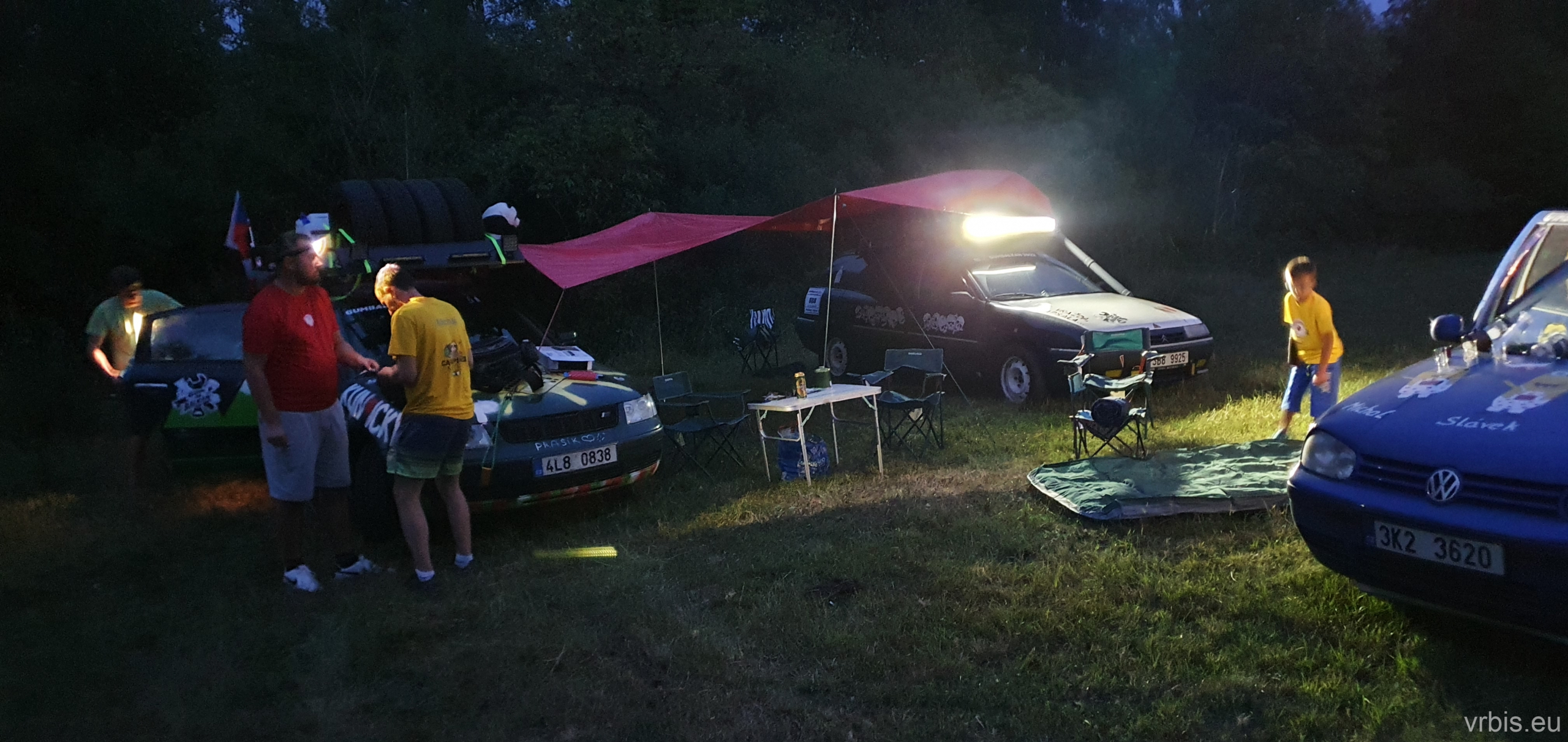 Dojeli jsme až za Spišškou Novou Ves, kde jsme na louce pod lesem utábořili. Setmělo se rychleji, než by se nám líbílo, ale s tím co jsme měli na autech namontvoané za světla, jsme potmě neseděli. Za světla jsme ještě stihli na Mimoně namontovat Megafon. Čehož jsme po chvíli, co se toho Karel ujal, velmi litovali.