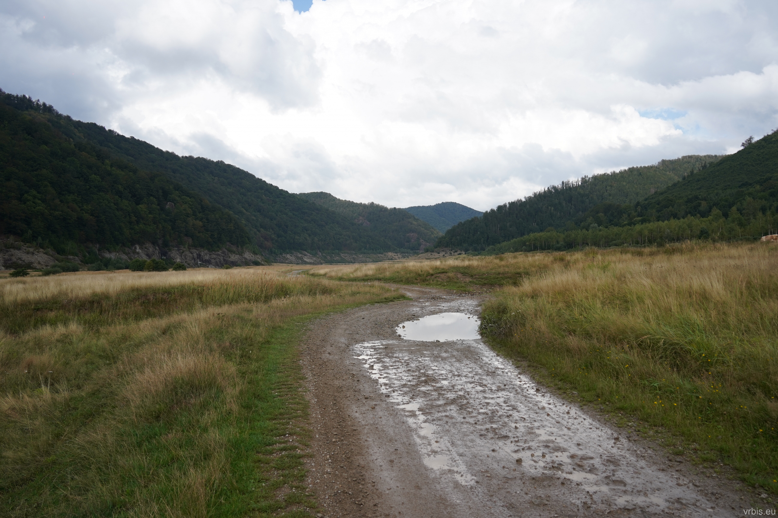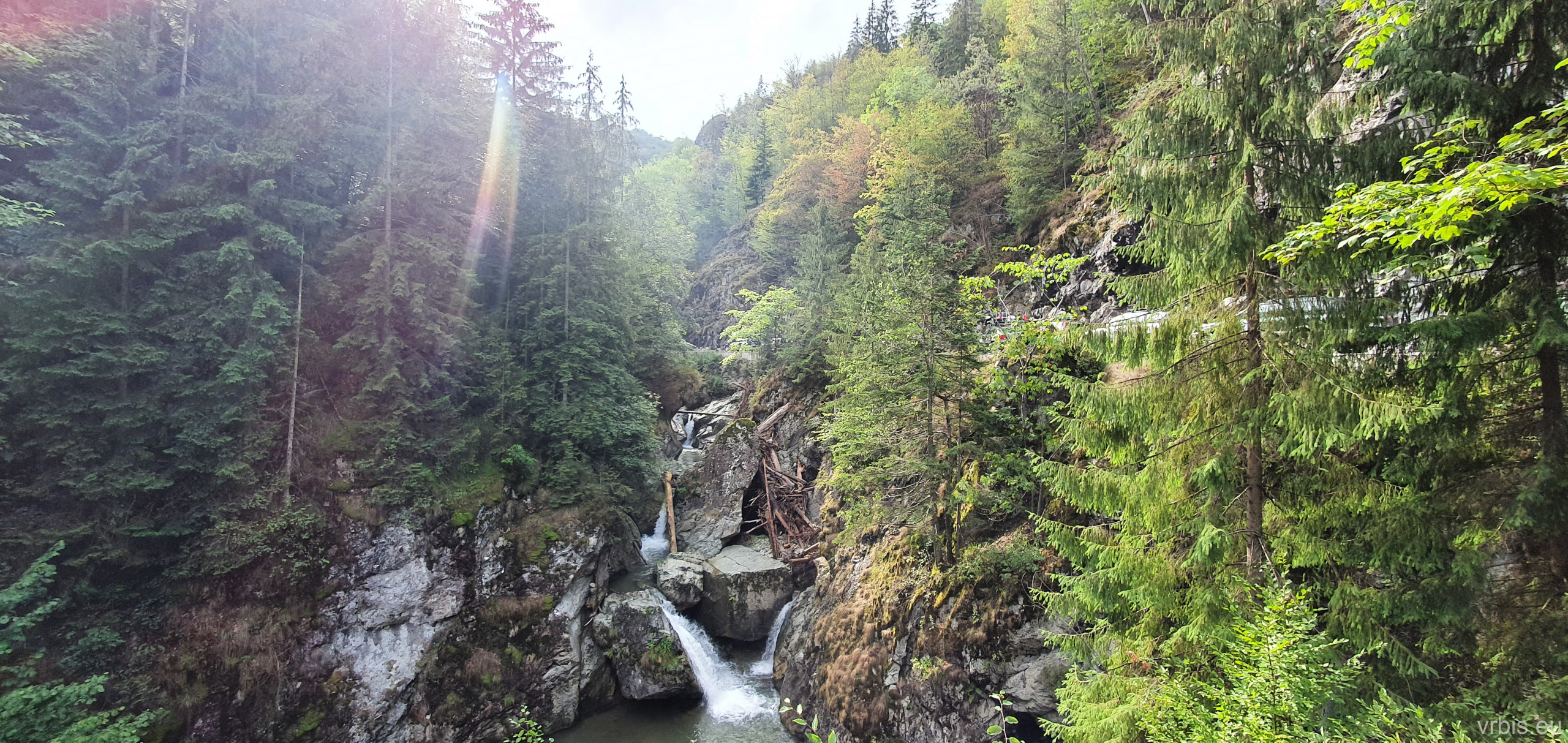 Po krátké zastávce u vodopádu „Cascada Iadolina“ následovala ještě kratší cesta. Po pár zatáčká nás v jízdě zastavil přes cestu stojící domíchávač. Zúsob výstavby zdejších silnic je mi záhadoou, ale budiž. Po asi púl hodině jsme mohli pokračovat dál. Následoval asfaltovaný úsek, který přerušovaly jen nepostavené mosty. Absenci vozovky a mostů začili kameny nasřkané signalním sprejem, jedna šipka pak ukazovala objížďku… Bezpečnost především… 😀
