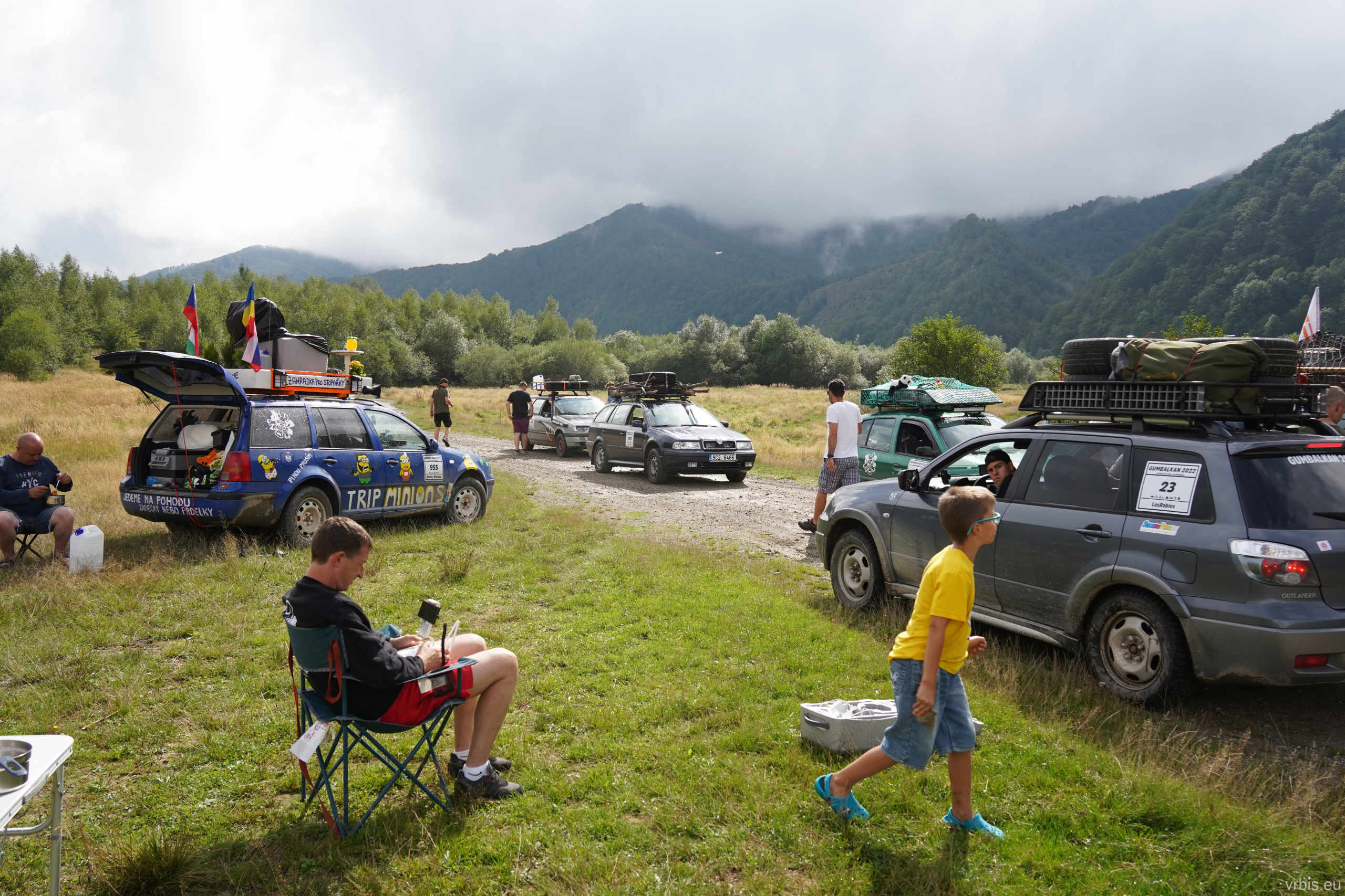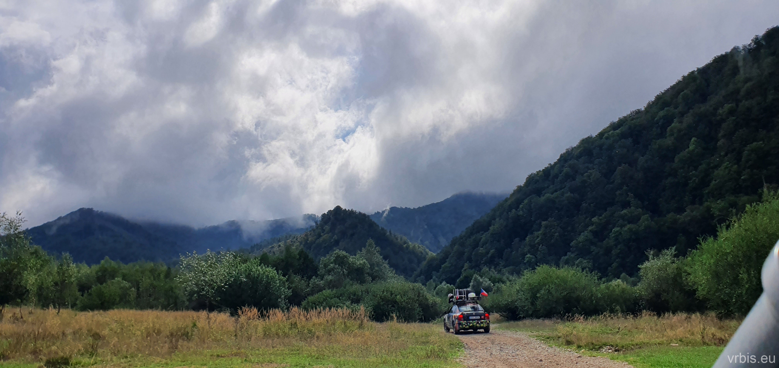 Rumunské (ne)cesty nás dovedli až na úpatí hory „Vârful Cucurbăta Mare“, kde jsme dojeli další posádky. Šnečím tempem jsme se za nimi vlekli po kamenité lesní cestě už asi 20 minut než mě to přestalo bavit. Volám do vysílačky „To je nudááá!! Nepředjedeme je?“. V zápětí se ozvalo „Ukaž jim to!“. Toho jsem se chytil, ikdyž byla cesta relativně úzká, pořád zde bylo ale dost místa na to abycho auta předjeli.